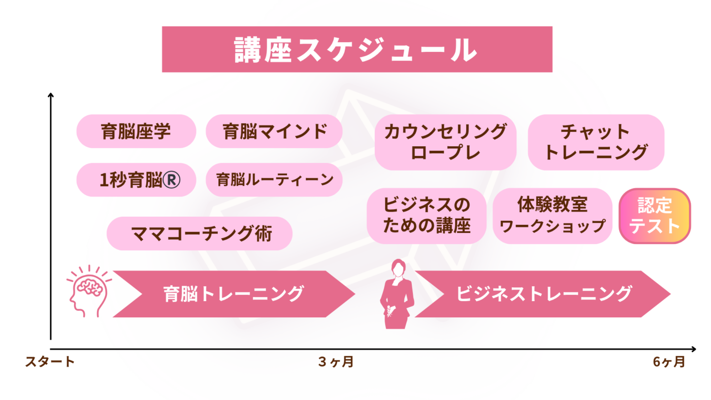 | 育脳座学 | 3回 | 非認知能力/子供の特性を知る育脳/産後ママの体の座学/年齢別 子供の特徴座学 |